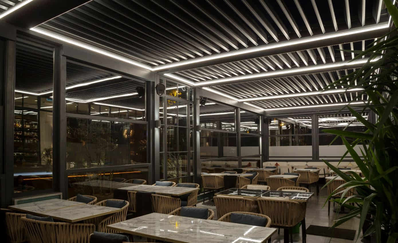 Tilia bioklimatik alüminyum tavan sisteminin minimalist tasarımıyla doğanın enerjisini yaşam alanlarınıza taşırsınız. Ev ,otel ,restoran ve kafelerinizde mimari dokunuzu güçlendirerek yaratıcı çözümler sunan Tilia ,modern teknolojisi ile ortamın mikro iklim dengesini korur. Her türlü hava koşulunda tek tuşla mükemmel konforu sunar.